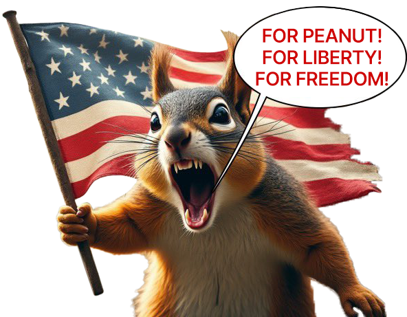 "For Peanut!" the squirrels shouted as they stormed government buildings. Over the past decades, anti-government sentiment had steadily built up among squirrels, and Peanut's death served as the spark that ignited the revolution.