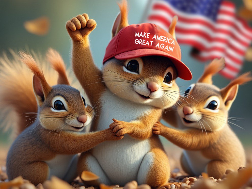 After the U.S. government seized and executed the squirrel "Peanut," squirrels across the country donned MAGA hats and launched a mass uprising.